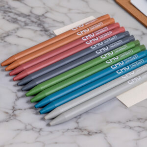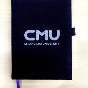 สมุดโน้ตปกผ้าสีดำ พร้อมที่เสียบปากกา สกรีนโลโก้ CMU