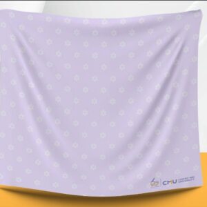 ผ้าพันคอพิมพ์ลาย พื้นสีม่วงลายดอกสักสีขาว